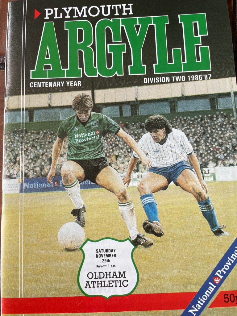 John Acres is a reporter/commentator on BBC Radio 5 Live and Final Score, he also hosts breakfast show on BBC Radio Devon and therefore it will be no great surprise to learn that John’s first match was at Home Park in November 1986. It was something of a humdinger, a top-of-the-table clash against Oldham Athletic and during the match he was actually pitch side and had to move for players to take corners. Only a few weeks before this match I made my only visit to Home Park, which went from bad to worse.